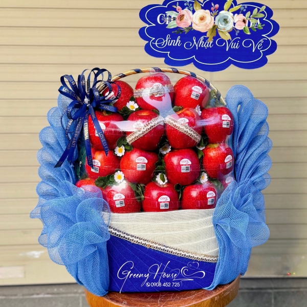 Giỏ trái cây sinh nhật với 100% táo Envy nhập khẩu cao cấp, thiết kế sang trọng, là món quà tinh tế thay lời chúc ngọt ngào và sức khỏe đến người nhận